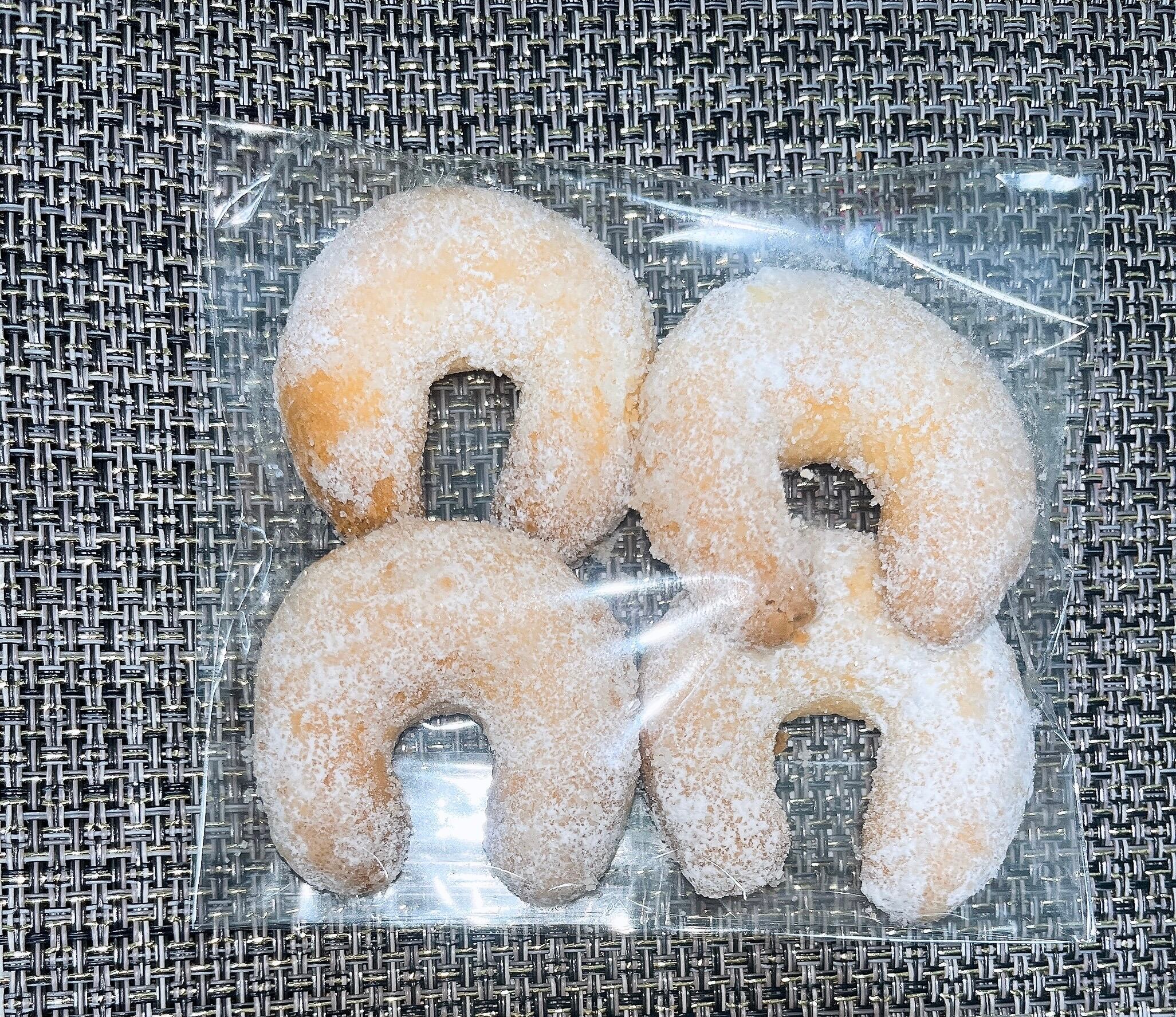 アーモンドプードルを練りこんだ生地を三日月型に焼き上げ、粉砂糖とバニラシュガーで仕上げました。